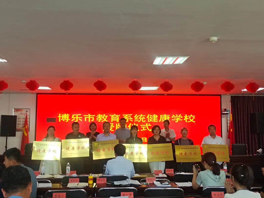 7月13日,博乐市健康学校授牌仪式在市教育局三楼会议室举行,博乐市教育局班子成员,全市中小学、幼儿园主要领导等参加授牌仪式。