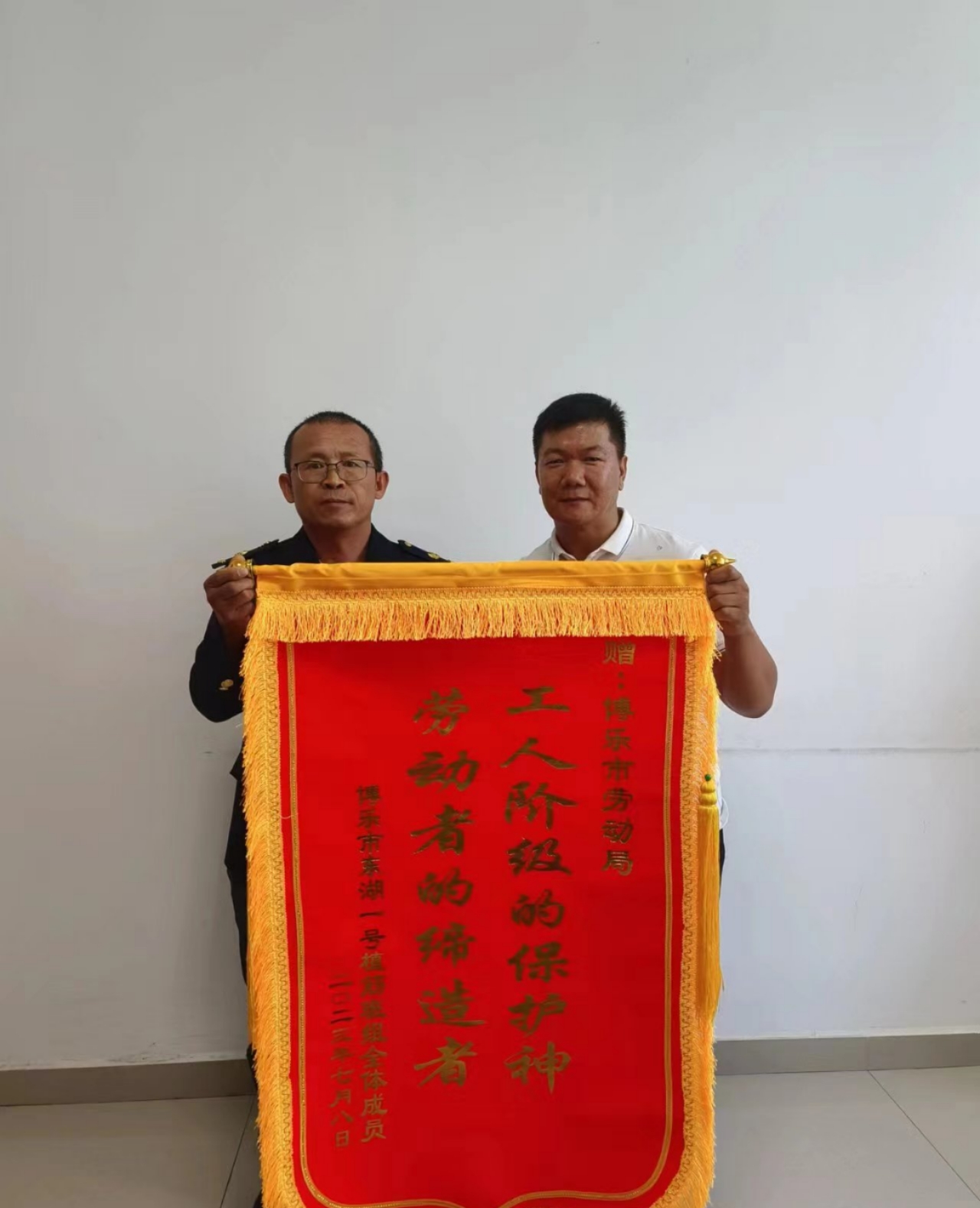 近日,在博乐市劳动监察大队办公室,张恩生等多名工人特意来博乐市劳动监察大队将锦旗递到工作人员手中。“多亏你们博乐市劳动保障监察大队工作人员,帮我们农民工要到了工资!”张恩生高兴地说。