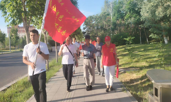 上午8点30分到达徒步起点--双子楼仁和春天门口,开启退役军人低碳环保之旅。本次将以仁和春天为起点,博尔塔拉纪念园为终点,徒步行走约2公里。