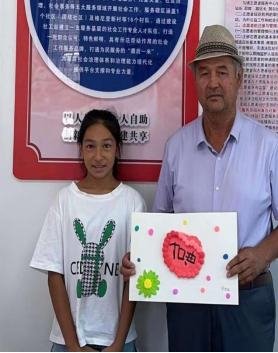 活动最后,孩子们将手中的作品赠送给退役军人,并在作品上一起留上他们的名字。