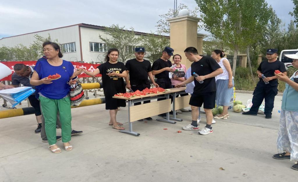 本次活动共为辖区120余名企业职工及居民发放西瓜和矿泉水,传递了正能量,让辖区企业职工及居民们感受到夏日的清凉和社区对他们的关心及牵挂,“看到他们拿到西瓜和矿泉水这么开心,这就是对我们工作的认可,鼓励我们以更加饱满的热情为大家提供更加便捷高效的服务!”社区党支部书记何军说。