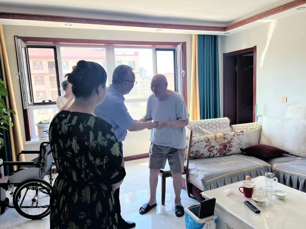 博乐市退役军人事务局党组书记、副局长古丽拜克热木·阿布力米提看望慰问复员干部乔尼、抗美援朝老战士李同林。