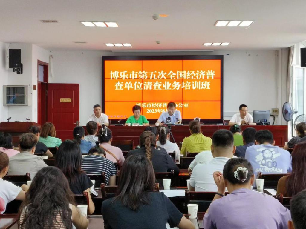 为高效推动博乐市第五次全国经济普查单位清查工作顺利开展,8月7日至10日,博乐市经济普查领导小组办公室先后分6批次对全市11个乡镇场(街道)开展单位清查业务培训,全市普查指导员、普查员共450人参加培训,自治州统计局党组成员、副局长苟君出席会议并讲话。