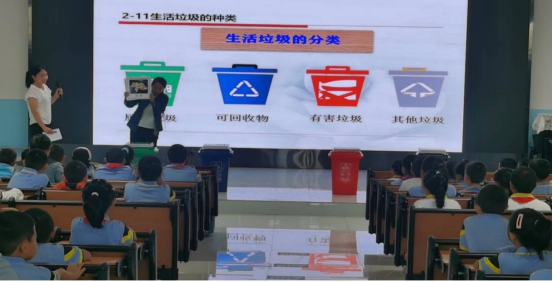 活动中,市容环境卫生服务中心垃圾分类宣讲员赵丽通过垃圾分类知识讲解、互动问答、垃圾分类卡片投放等寓教于乐的方式,向全体师生讲述了垃圾分类的重要意义,以及日常生活中如何进行正确分类等知识。在轻松活泼的气氛中,学生们积极参与、大胆回应、热烈互动,使垃圾分类知识看在眼里,记在心里。