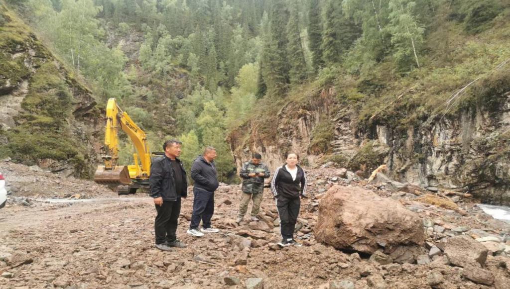 面对严重路基水毁和山体泥石流灾情,博乐市交通运输局高度重视,积极应对。博乐市交通运输局局长钟燕第一时间带领相关科室人员迅速组织应急抢险队,协调装载机、挖掘机、自卸车等机械备,第一时间赶赴现场查看灾情,启动应急预案指导抢险救灾。通过博乐市交通运输局连日对水毁道路约1.7公里进行抢修,新建混凝土挡墙300m,目前已将受困的3000只牛马,2000只羊全部救出,并在山体塌方和水毁路段设置好安全警告牌等警示行人、车辆注意安全。