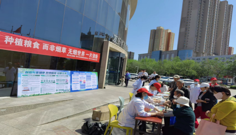 活动现场通过悬挂“种植粮食而非烟草无烟世界一片清新”为内容的横幅,设置“中国戒烟平台”微信小程序二维码,摆放宣传展板,发放宣传折页,设置咨询台等形式向群众宣传戒烟控烟知识,向广大群众发放宣传单,介绍吸烟的危害、二手烟、三手烟、电子烟的危害、戒烟的好处和方法等知识。