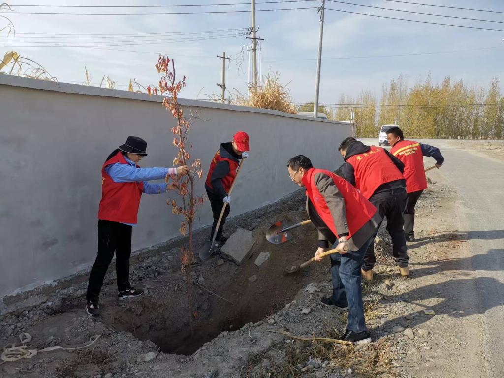 为践行习近平生态文明思想,树立“绿水青山就是金山银山”理念,做到人人营造绿色、人人拥有绿色,绿化美化家园,10月26日,博乐市达勒特镇查干苏木村的结对单位乌鲁木齐市煤炭局向村里捐赠了2200颗苗木,包联单位博乐市机关事务服务中心党支部党员与中心阳光志愿服务队队员一起前往查干苏木村开展秋季植树活动,全力推进美丽乡村人居环境建设。