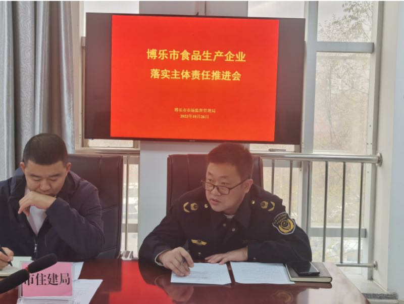 为进一步强化食品生产企业主要负责人及食品安全管理人员职责,建立健全食品生产安全动态风险防控机制,扎实推进食品生产企业有效落实《企业落实食品安全主体责任监督管理规定》(以下简称《规定》)要求,10月26日博乐市市场监督管理局召开了博乐市食品生产企业落实食品安全主体责任推进会,辖区30余家食品生产企业负责人、食品安全总监、食品安全员参加。