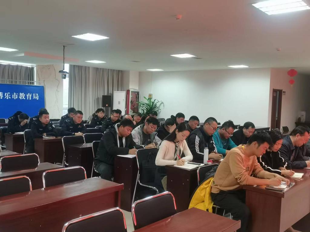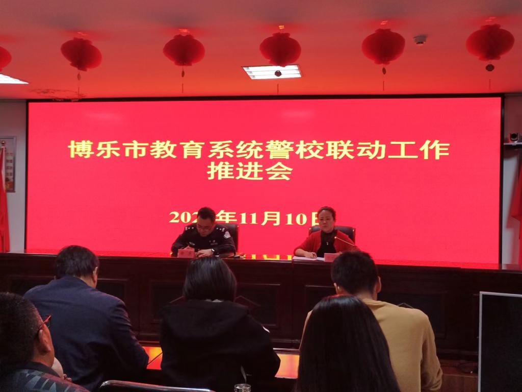 2023年11月10日下午,博乐市教育局在三楼会议室召开博乐市教育系统警校联动工作推进会,会议由博乐市人民政府教育督导室副主任张瑞娟主持,各校分管领导、综治主任、公安民警共40人参加此次会议。