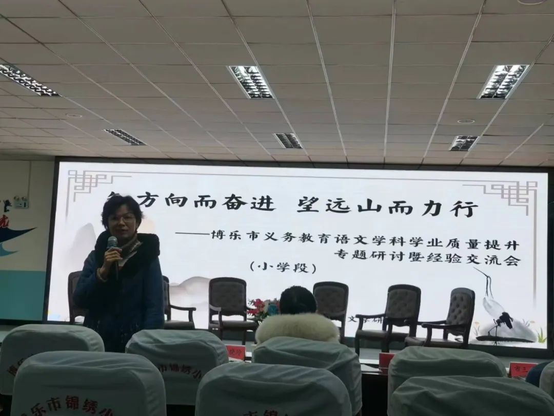 为全面加强博乐市义务教育阶段语文课程建设,进一步提高博乐市小学语文教师国家通用语言文字教育教学水平,发挥语文学科的基础性作用,针对性解决义务教育阶段学生语文课业成绩总体不高的问题,根据《关于提升自治区义务教育阶段语文学科学业质量工作方案》《自治州语文学科低分学生成绩提升专项行动》《关于提升博乐市义务教育阶段语文学科学业质量工作方案》文件精神及要求,2023年12月5日下午,博乐市教育教学研究中心在博乐市锦绣小学童味楼三楼会议室举办了博乐市义务教育语文学科(小学段)学业质量提升专题研讨暨经验交流会。