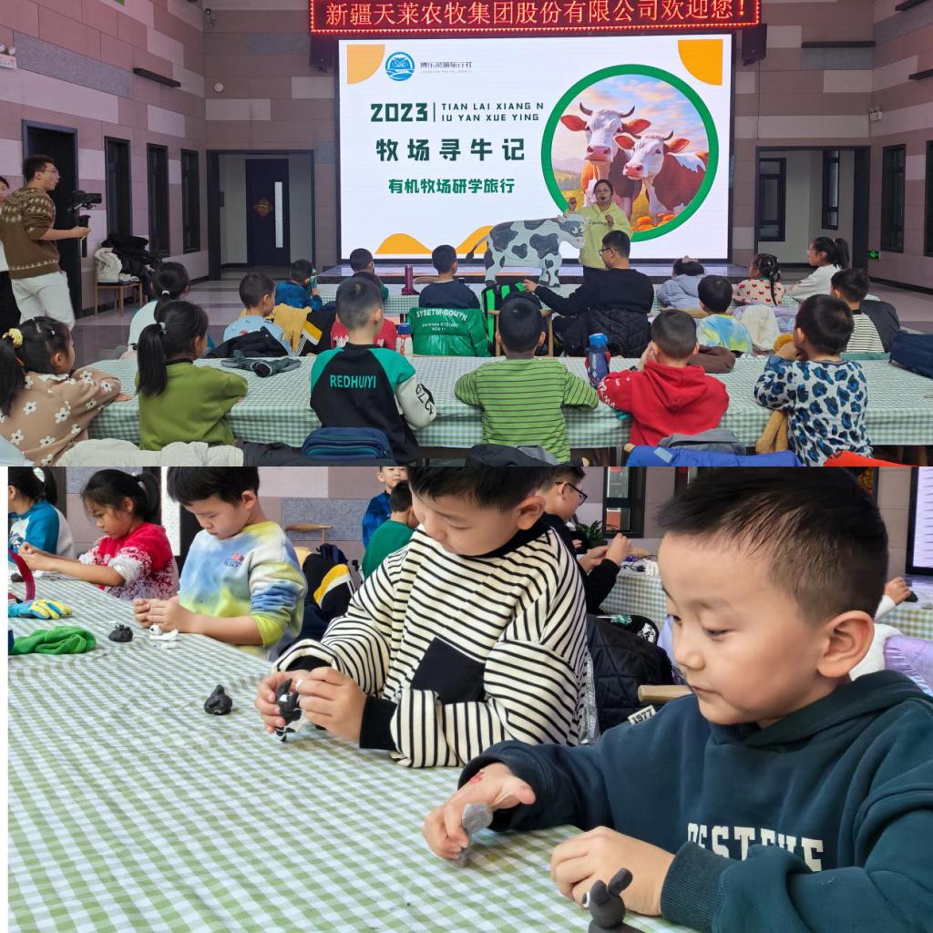 在研学小课堂上,了解天莱香有机牛的品种及牛的反刍过程,孩子们通过上午对牛的印象,捏出了自己心目中牛的形象,这个环节锻炼了孩子们的观察力、想象力和动手能力。下午孩子们一起做了小游戏“珠行万里”,这个活动能增强团队荣誉感,培养了团队的默契程度和沟通能力。