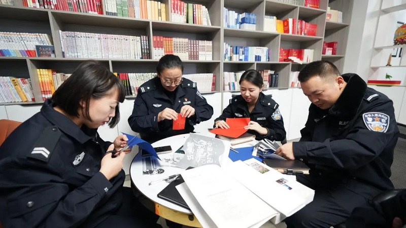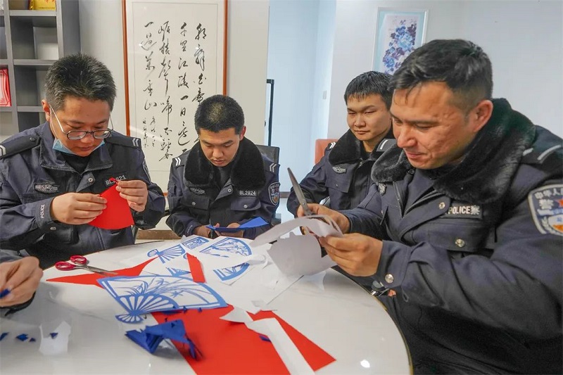 “一把剪刀,一张彩纸,一双灵巧的手上下翻飞,纸屑纷纷落地,短短二十多分钟,体现庆祝中国人民警察节的画面跃然纸上,栩栩如生。2023年12月26日,博乐市公安局政工监督室党支部举办了“非遗文化进警营 剪出多彩‘警色’”活动。