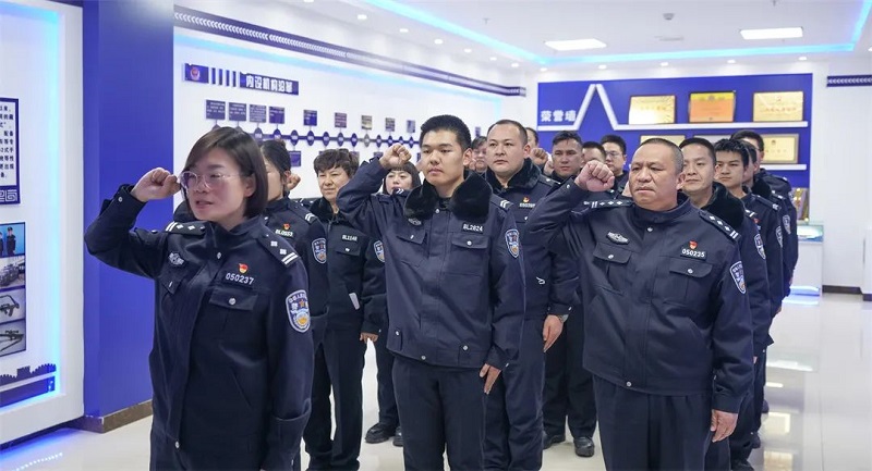 “我宣誓,我志愿加入中国共产党,拥护党的纲领......”全体民警辅警面向党旗高举右拳,庄严宣誓。铿锵有力的入党誓词表达了同志们坚决拥护“两个确立”、坚决做到“两个维护”的政治自觉思想自觉行动自觉。