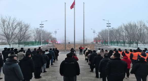 卯兔辞岁,辰龙迎新!1月1日,新年伊始,万象更新。为了庆祝新年的到来,在园区营造欢乐、祥和的节日氛围,激发党员干部、企业职工的爱国热情。1月1日上午10点,博乐边合区干部职工、社区全体成员、派出所、物业公司和企业代表共90余人在博乐边合区管委会楼前整齐列队,隆重举行“庆元旦,迎新年”升旗仪式,表达对新一年的美好憧憬和深情祝愿,抒发对伟大祖国无限的热爱和崇高的敬意。
