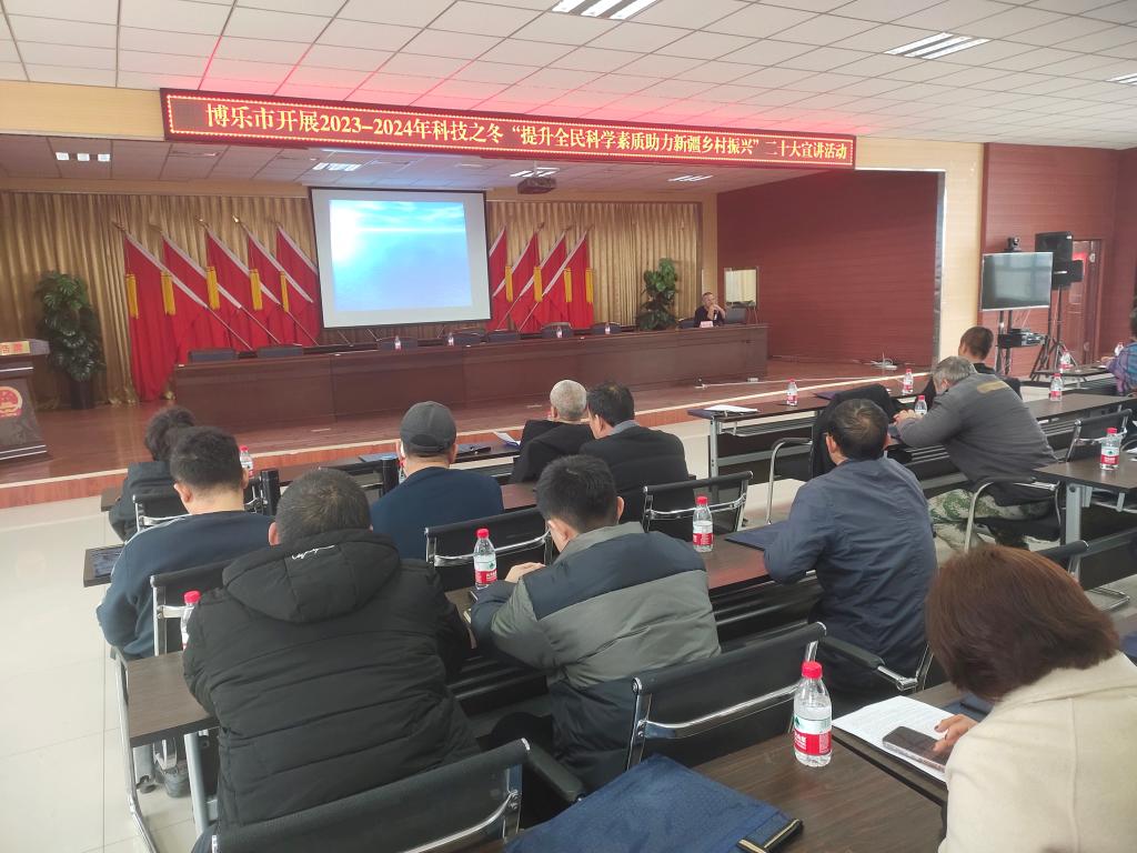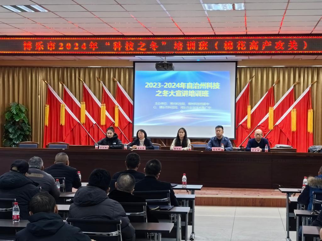 为做好博乐市“科技之冬”培训,进一步提高农民素质,挖掘博乐市棉花、玉米农作物提质增效潜力,提升农作物品质,打造“2024年农作物高产攻关观摩示范点”,2024年1月16日,在博乐市达勒特镇启动了2023-2024年自治州科技之冬大宣讲暨博乐市2024年“科技之冬”培训班,博乐市科技局邀请博州农业科技开发中心、博乐市农业技术推广中心农业专家进行专题授课,共有50名乡镇农技推广人员、种植大户、示范户及相关企业人员参加培训。