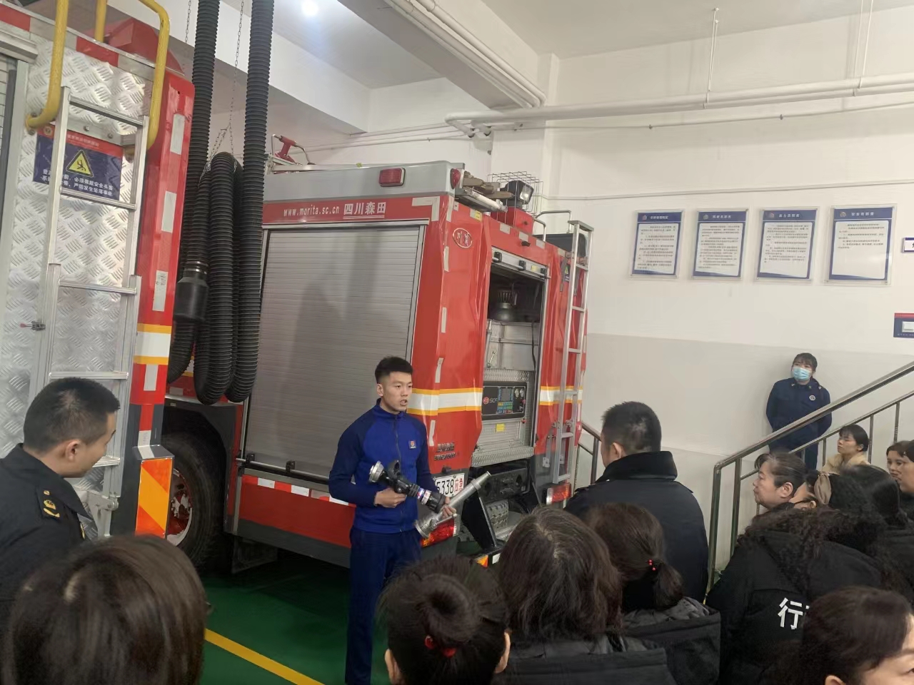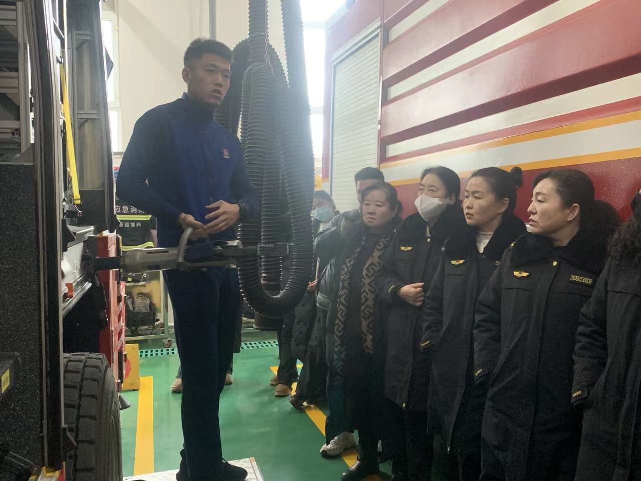 在科普教育基地,大家参观了不同种类的消防车、消防服装、消防器材、设备。在参观过程中,讲解员通过讲解一系列火灾救援案例传授了各种消防器材的具体应用和遇到火灾时正确的报警方式、自救方法。