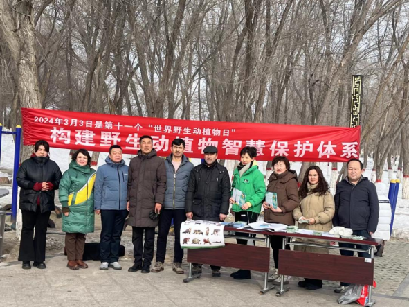 2024年3月3日是第十个“世界野生动植物保护日”,为进一步提升群众对野生动植物的保护意识,引导群众积极参与到保护野生动植物的行动中。3月3日,博乐市林业和草原局联合艾比湖自然保护区管理局、夏尔希里自然保护区管理站、哈日图热格国有林管理局及三台国有林管理局在滨河公园开展了以“构建野生动植物智慧保护体系”为主题的野生动植物保护日宣传活动。