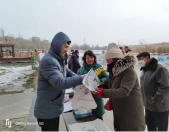 活动中,工作人员在博乐市滨河公园向广大群众宣传保护野生动植物的重要性,进一步向群众普及野生动物保护法律知识,让禁食禁猎野生动植物理念更加深入人心,让更多人参与关爱野生动植物的行动,共同推进生态文明,共同建设美丽家乡。