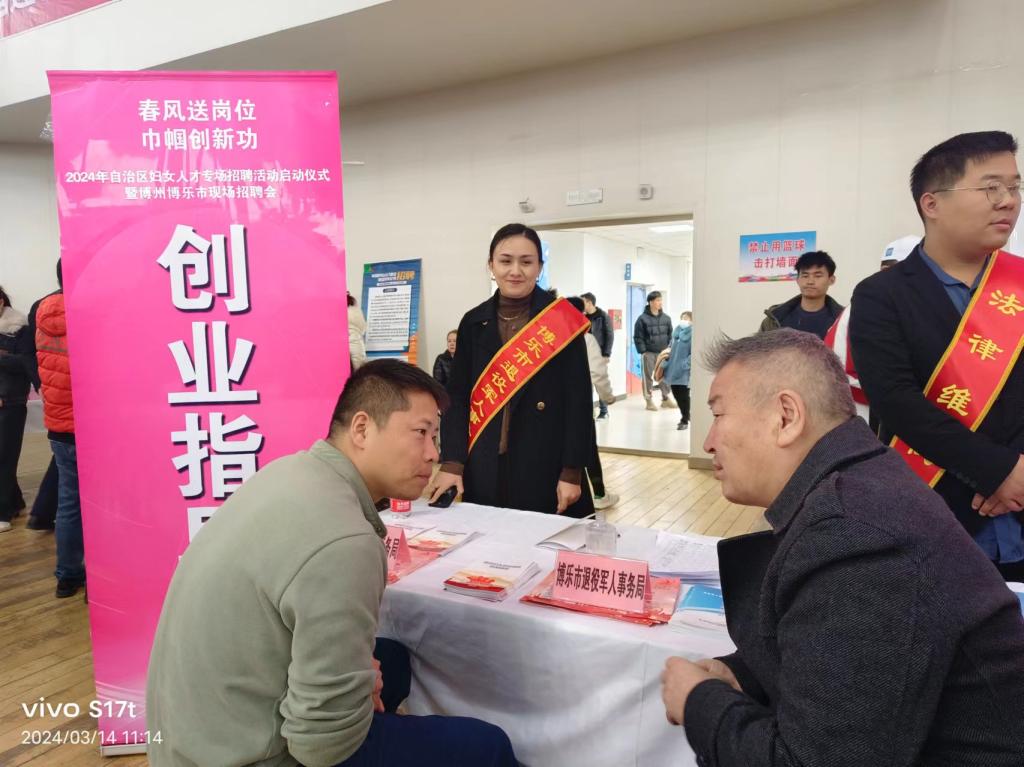 为进一步做好退役军人及军属就业创业服务工作,拓宽退役军人就业渠道,3月14日上午,博乐市退役军人事务局组织退役军人妇女及军属参加“春风送岗位 巾帼创新功”2024年自治区妇女人才专场招聘活动。