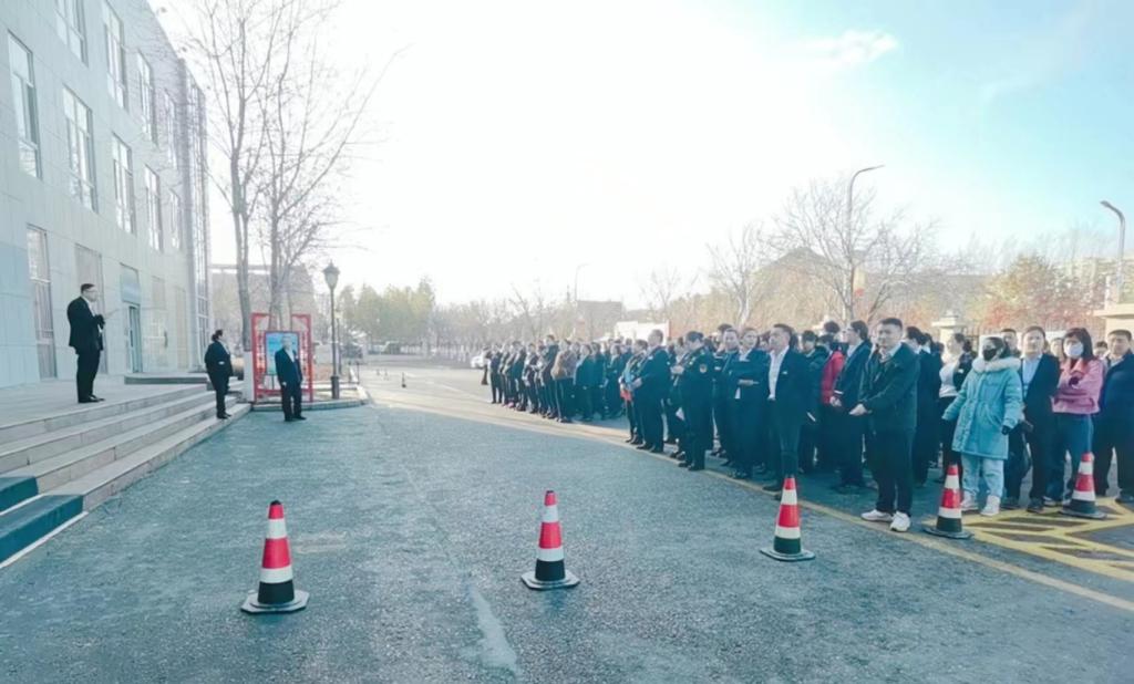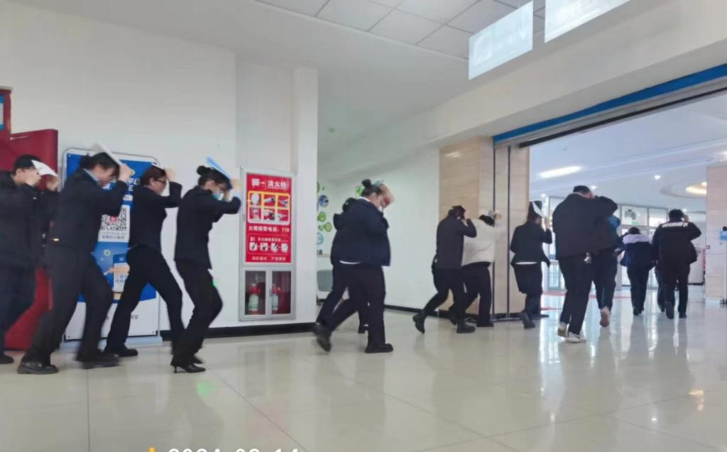 警铃响起,所有干部职工立即就近蹲在桌下、承重墙的墙根、墙角,保护好头部,听到“疏散”指令后,所有人员按照指定的逃生路线,迅速有序地撤离到各自的安全地点,各楼栋负责人快速清点人员,并向指挥部汇报。
