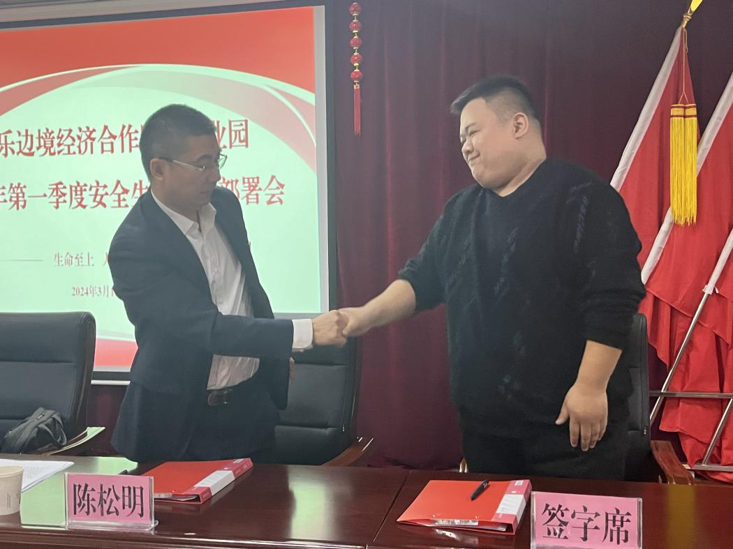 会上传达学习了《2024年3月安全生产风险提示》《博乐市安全生产治本攻坚三年行动方案(2024—2026年)》的通知文件精神。同时,企业代表进行表态发言及反思发言并与博乐边合区签订2024年安全生产目标管理责任状。
