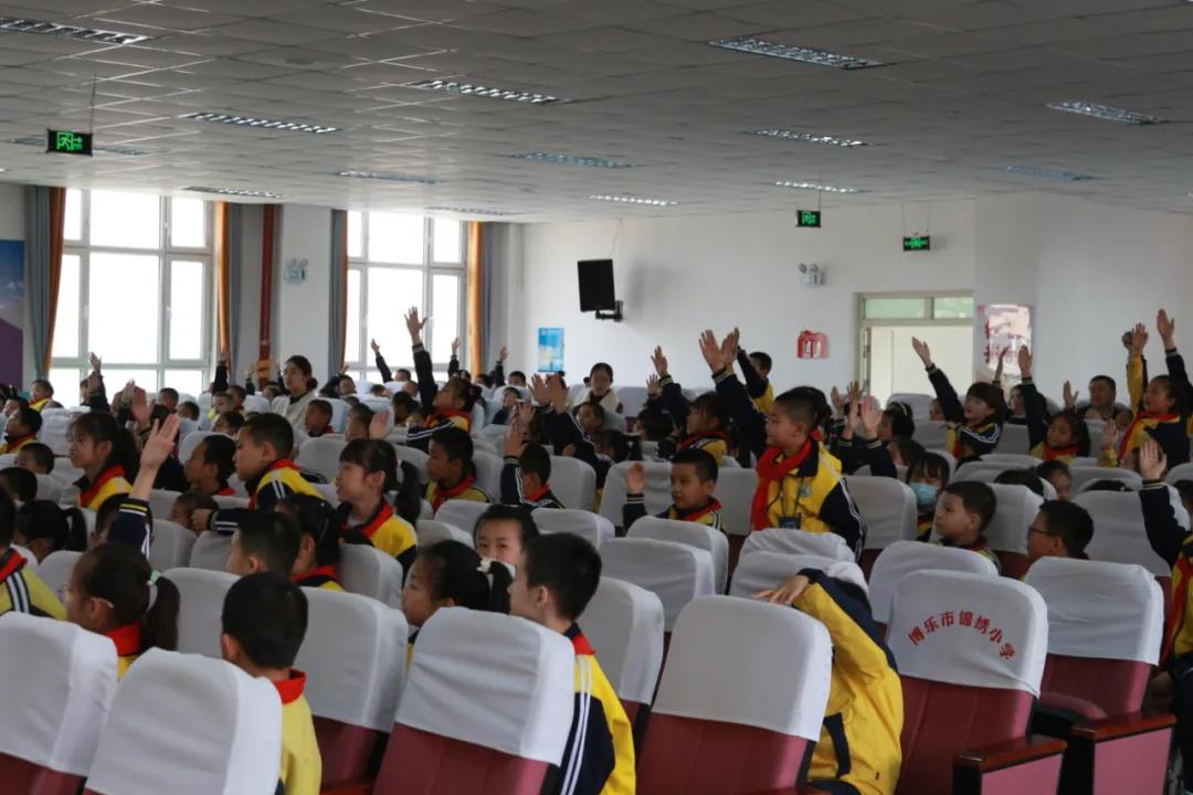 讲授这堂课的“教师”是博乐市公安局局党委委员、副局长耿苏新。当日上午,耿苏新走进校园为学生们带来了一场内容丰富、课程精彩的普法主题讲堂,活动现场,学生们纷纷抢着回答问题,现场气氛十分热烈。耿苏新从认识警察职业开始,告诉同学们人民警察的职责是保卫国家安全,保护公民人身安全、生命财产安全,预防、惩治和打击违法犯罪活动。接着介绍了警察警种的分类,以及警服、警械、警衔等关于警察的小常识,然后告诫孩子们通过了解基本法律知识,树立规则意识,尊重和遵守各类法律法规和规章制度。