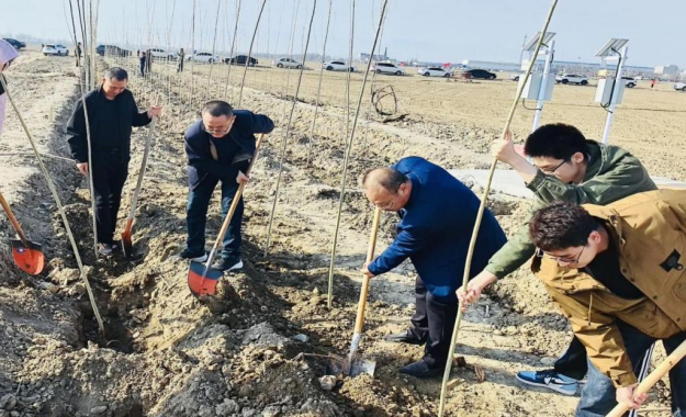 植树现场,大家密切配合、分工协作,扶苗、培土、夯实、浇水,每项工作、每个步骤都有条不紊地进行着。在大家的共同努力下,共栽植了500余株杨树树苗。一排排树苗迎风挺立,在和煦的春风中,焕发出新的生机与希望。博乐市财政资金动态监控中心主任黎华说:“能够亲手栽下树苗,是一件很有意义的事情。希望以后能有机会多参加类似的活动,引导带动更多人参与到生态环境保护中来,为推动高质量绿色发展贡献力量。”