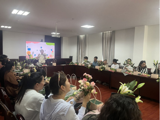 在母亲节来临之际,为丰富干部职工精神文化生活,营造感恩母爱、关爱母亲、回报母亲的良好氛围,宣传爱国主义教育。2024年5月11日下午,博乐市自然资源局组织开展以“花漾时光 感恩母爱”为主题的插花体验活动。