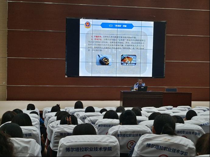 为全面增强博乐市行政事业单位财务人员的防电信网络诈骗防范意识,提升财务人员辨别网络诈骗各种方式、手段的能力,降低和防止被骗风险。5月21日下午,博乐市财政局、博乐市公安局联合在博尔塔拉职业技术学院举办行政事业单位财务人员反电信网络诈骗知识讲座。