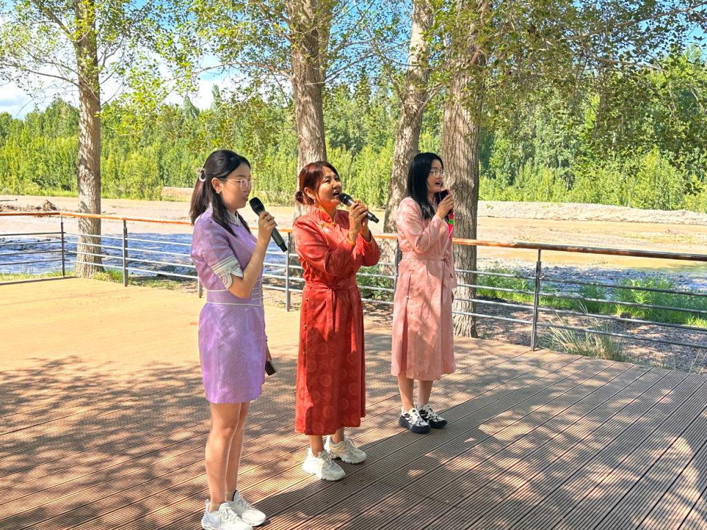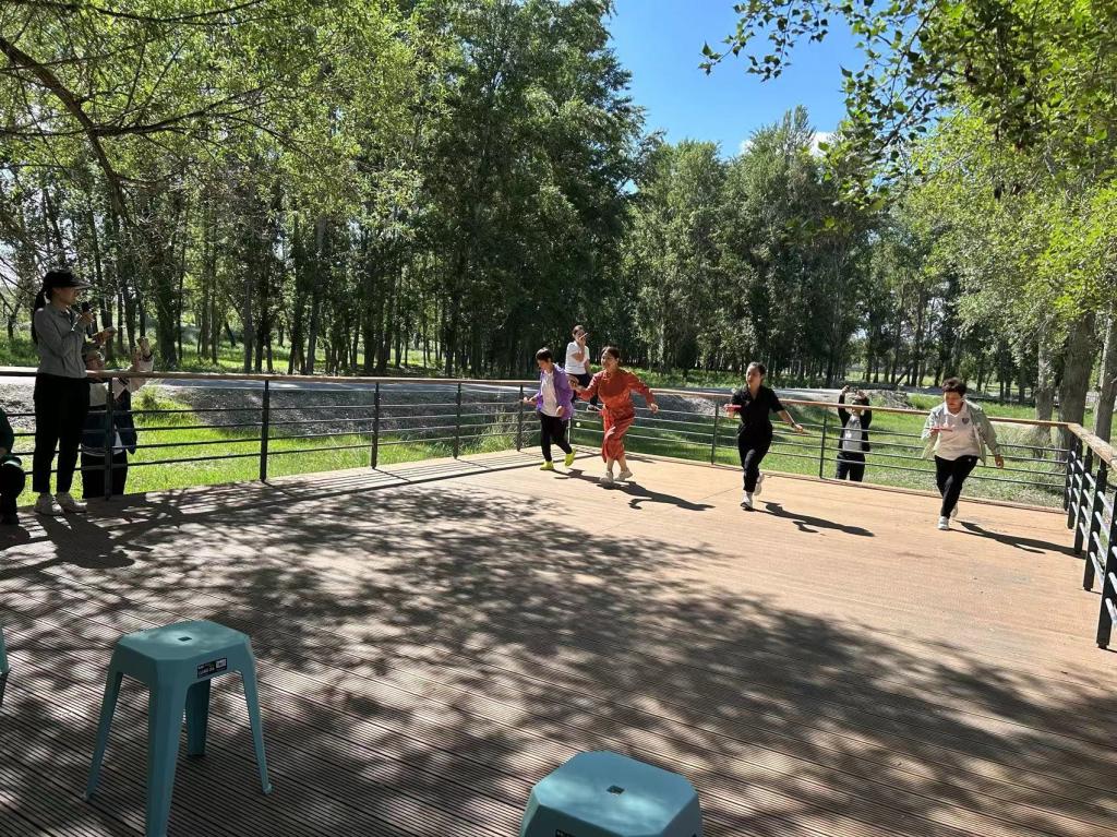 途中,我们选择一处平台在此停下脚步,大树成荫,亭台水榭,以此为舞台,在大自然中感受历史、感受家乡。
