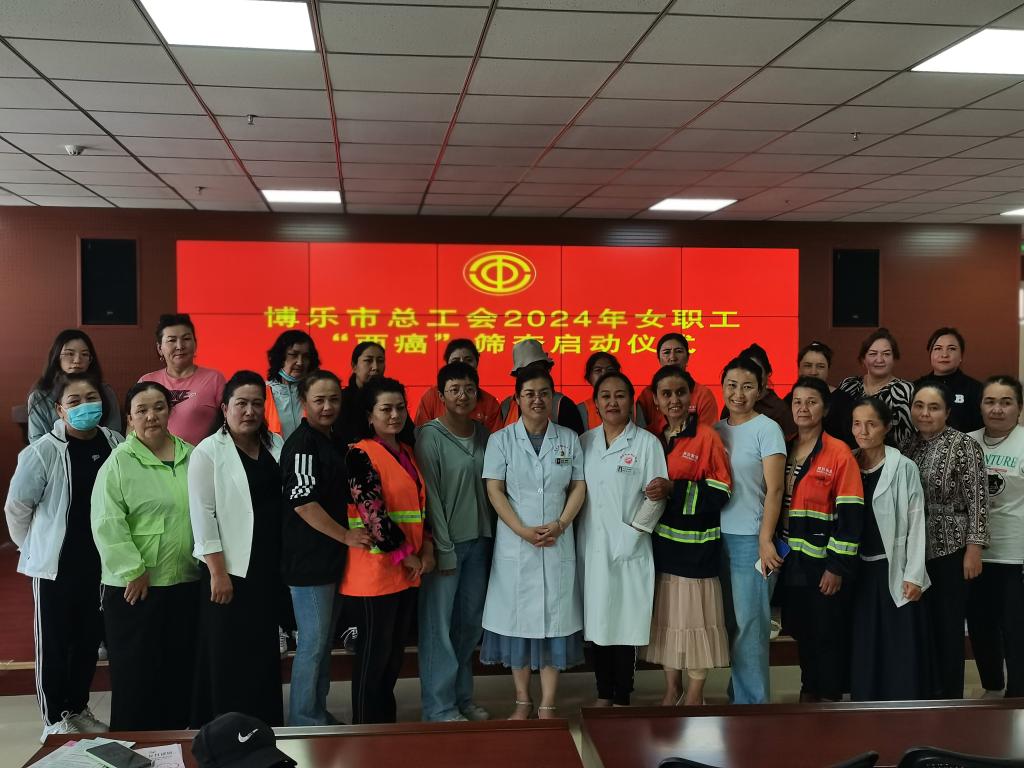 6月14日,博乐市总工会“关爱女职工 工会在行动”2024年女职工“两癌”筛查工作在博乐市妇幼保健院正式启动。博乐市总工会党组成员、女工委主任赵娜,博乐市妇幼保健院计划生育服务中心党支部书记、主任吴海嫣,中心副主任叶尔登努干及市总工会干部、相关环卫负责人和环卫女职工出席了启动仪式。