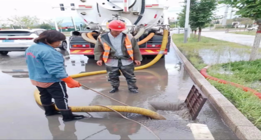 博乐市住房和城乡建设局市政工程服务中心第一时间启动防汛应急预案,迅速调集人员和物资,确保应急排水人员到岗、装备到位、责任落实、信息畅通,全力开展防涝抢险工作,确保群众平安出行。