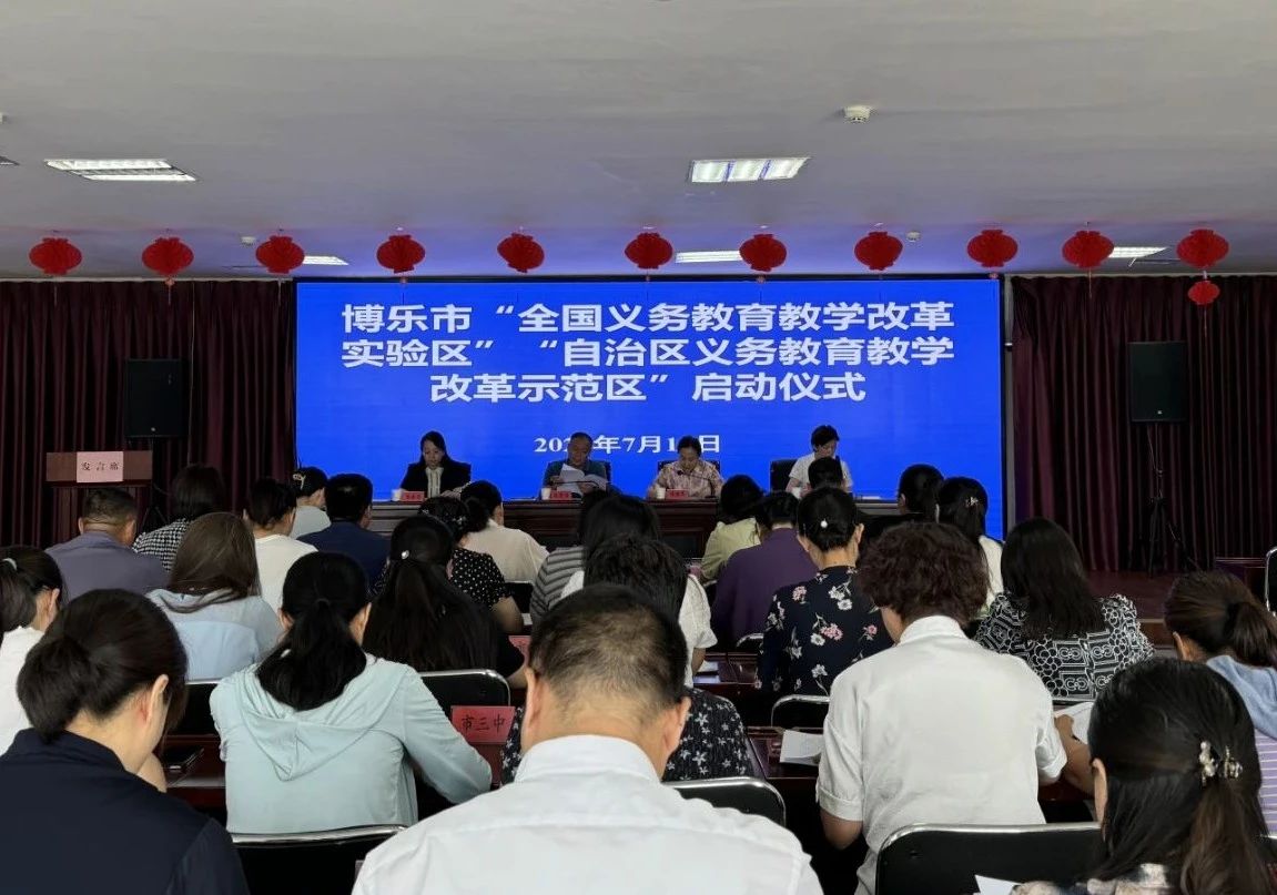 7月16日,博乐市全国义务教育教学改革实验区、自治区义务教育教学改革示范区工作启动仪式在博乐市教育局举行。此次启动仪式由博乐市委教育工委常务副书记、教育局党组书记、副局长陈建华主持,博乐市人民政府党组成员、副市长陈楚雄出席,博乐市教育局班子成员、相关科室负责人,全市义务段中小学书记、校长、分管教学副校长等参加。