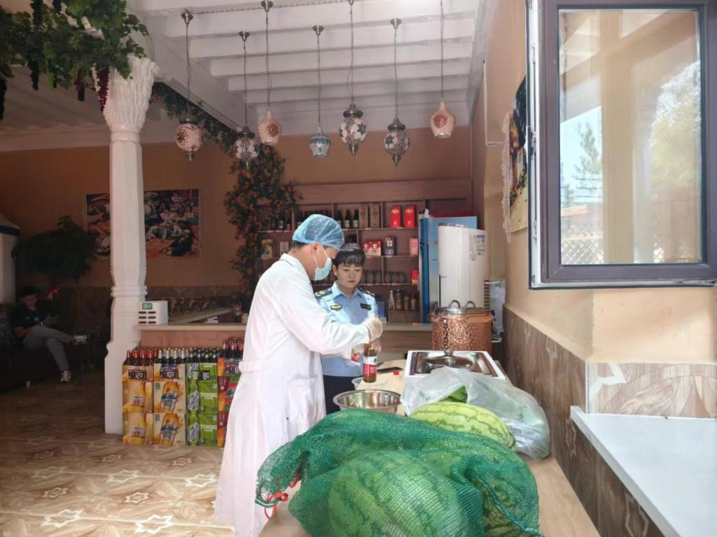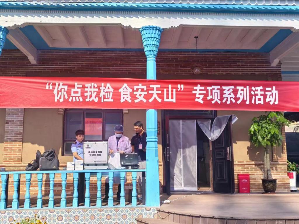 随着旅游旺季的来临,博乐市各景区迎来客流高峰。7月30日,博乐市市场监督管理局在青得里镇阿里翁白新村景区开展“你点我检”活动,守护游客“舌尖上的安全”。