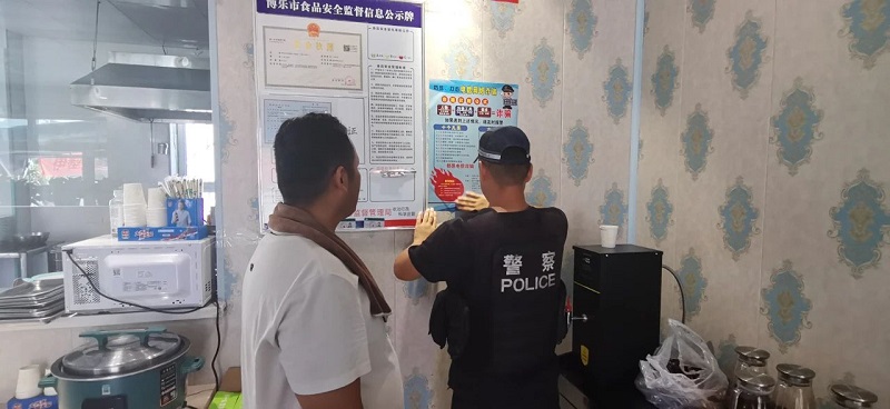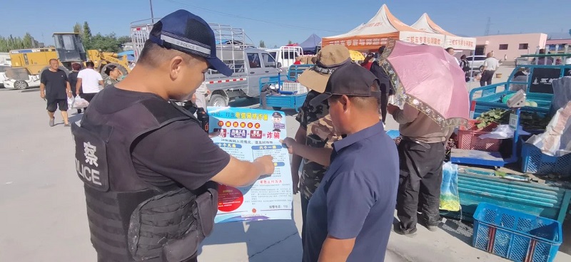 为深入推进夏季治安打击整治行动,进一步提高广大群众的安全防范意识,8月17日,博乐市公安局巡特警大队乌镇中队组织警力深入辖区人流量密集商铺、集市开展 “反诈+禁毒”普法活动,努力营造人人禁毒、人人反诈、人人参与、人人宣传的浓厚氛围,持续巩固良好社会治安环境。