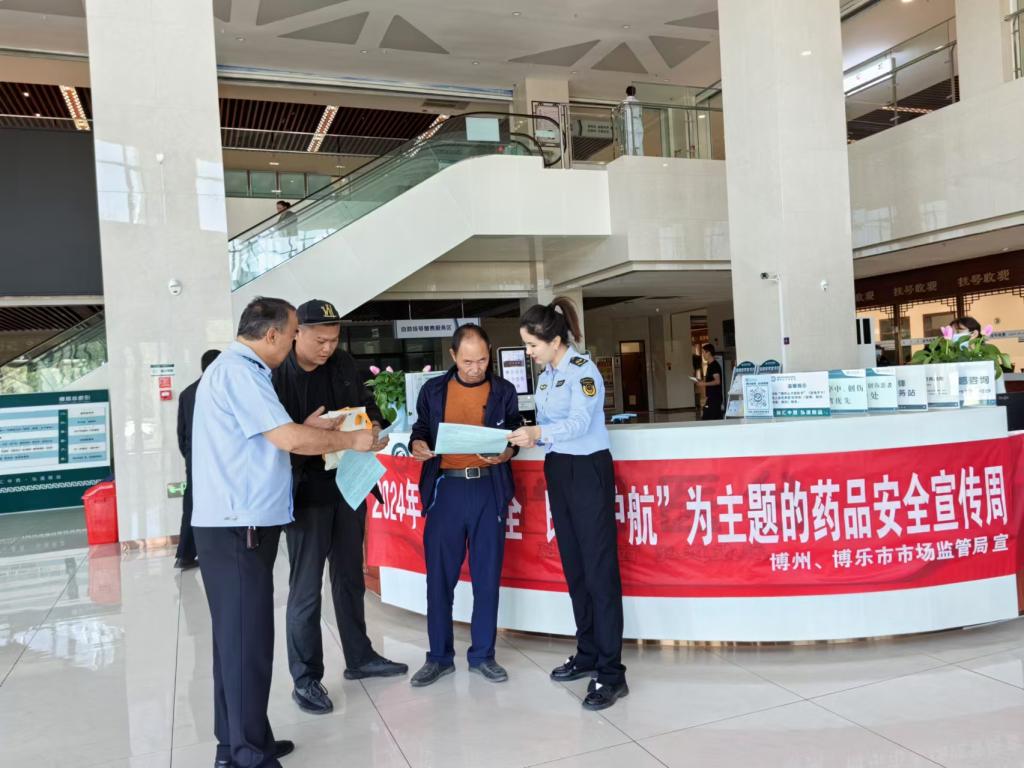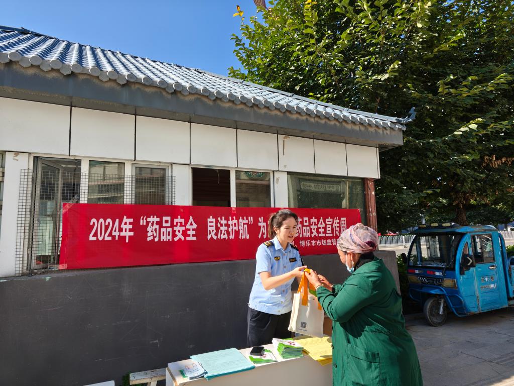 为促进药品安全知识的普及和宣传,推动社会各界对药品安全的关注,进一步提升全社会的药品安全意识,博乐市2024年“全国药品安全宣传周”于9月2日拉开帷幕,博乐市市场监督管理局联合博州市场监督管理局在博乐市小营盘镇、青镇基建队、博乐市人民医院相继开展了以“药品安全 良法护航”为主题的药品安全集中宣传活动。本次宣传活动旨在提高公众对药品安全的认识,增强对药品的正确使用和合理选择,预防和减少药品误用、滥用的风险。