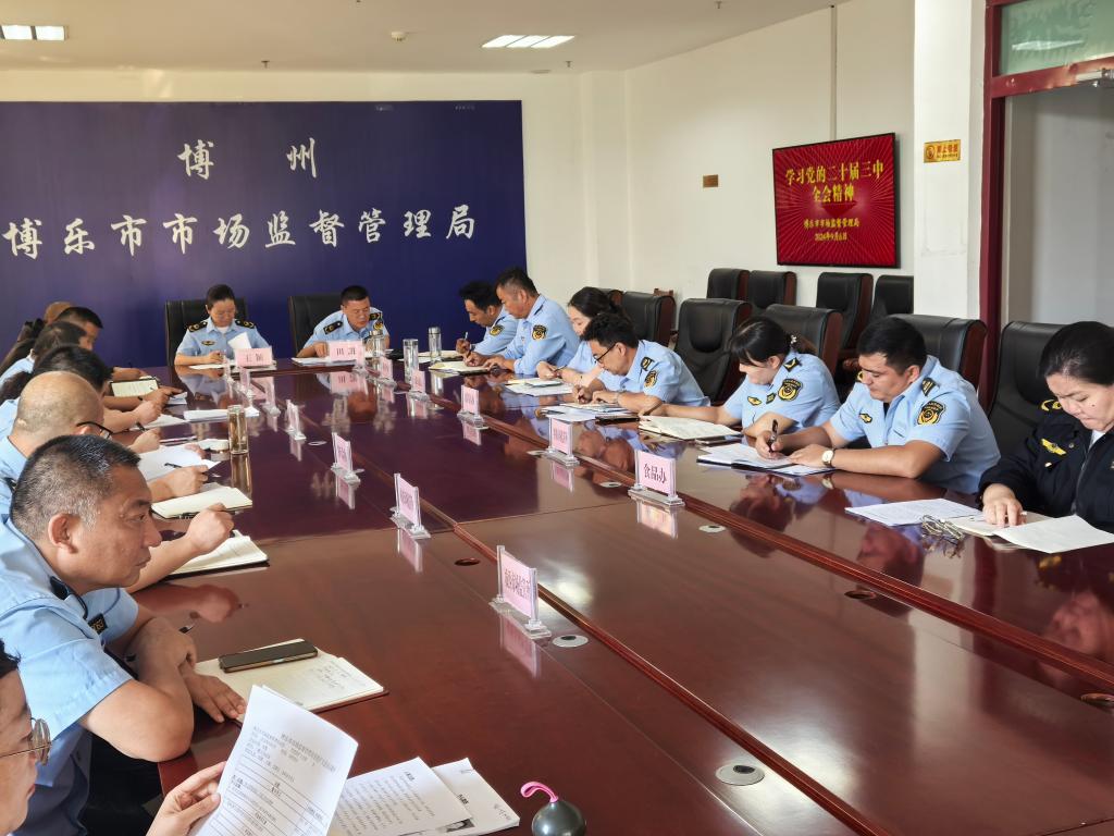 博乐市市场监督管理局多措并举学习贯彻党的二十届三中全会精神,以确保全会精神深入人心,并有效指导市场监管工作。