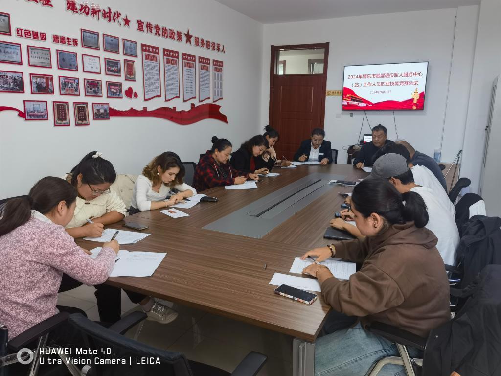 9月11日,博乐市退役军人事务局举办2024年基层退役军人服务中心(站)工作人员职业技能竞赛。来自市退役军人服务中心工作人员以及各乡镇、街道退役军人服务中心(站)15名工作人员参加。