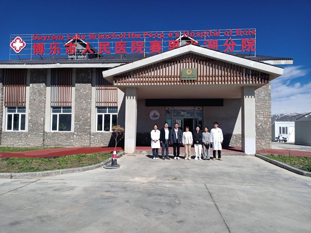 9月9日,武汉市第六医院(江汉大学附属医院)刘敏院长一行4人在博乐市中西医结合医院(博乐市人民医院)党委副书记、院长段刚峰及相关科室负责人陪同下,到赛湖分院调研。