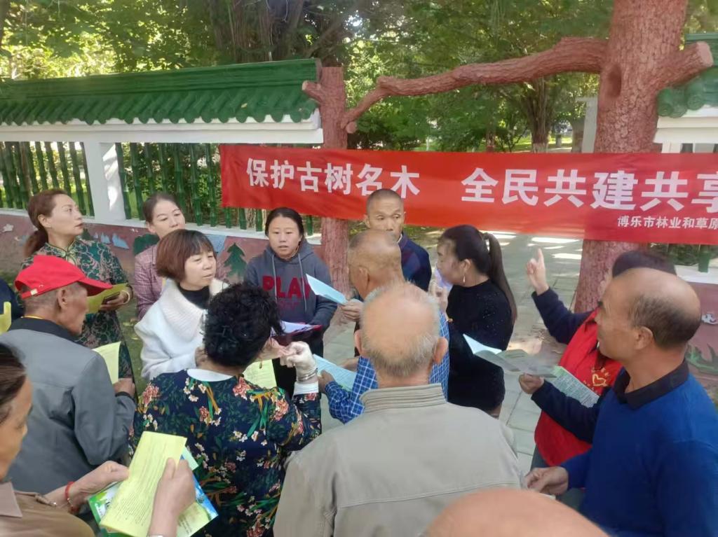 为进一步加强对古树名木保护管理工作,提高群众对古树名木保护重要性的认识。2024年9月19日,博乐市林草局与博尔塔拉蒙古自治州林草局绿化中心共同组织开展以“保护古树名木 全民共建共享”为主题的古树名木保护科普宣传周活动。