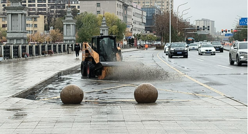 采用人机相结合的作业模式,出动山猫车9辆、前置滚刷车8辆,加强道路机械化洗扫作业频次,强化冲洗作业,并配备小型冲洗车对大型作业车辆盲区实行精细化清洁作业,以做到冲洗全覆盖,路见本色。同时,加大对城区生活垃圾清运频次,确保雨天城区生活垃圾日产日清,维护城区环境卫生整洁有序。