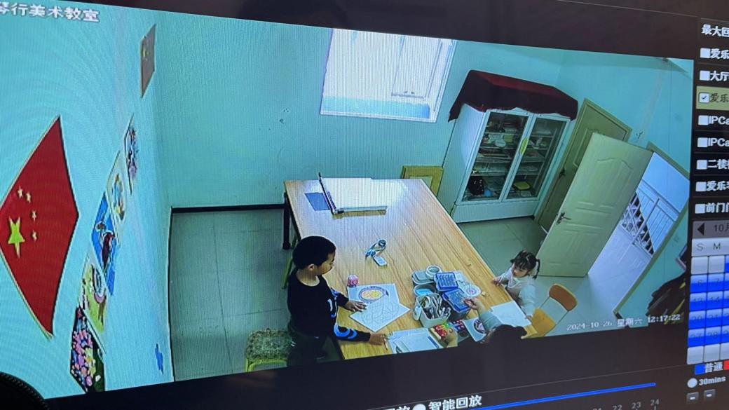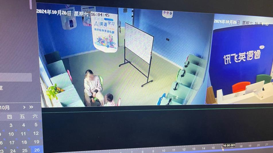 10月30日上午,博乐市“双减”专班在检查过程中发现博乐市宝贝城二楼奥兰熊科技有限公司存在违规开展学科类培训行为。该机构已取得科技局颁发的办学许可证及市场监督管理局颁发的营业执照,机构内售卖“讯飞英语通”电子产品,但在现场发现一间摆放有桌椅及黑板的自习教室,工作人员调取10月26日—27日监控发现一名教师正在对一名学生授课行为,疑似存在“一对一”英语学科类培训。