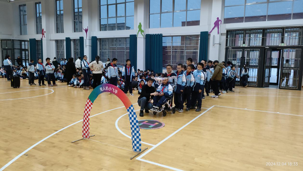 在博乐市第八小学,无人机编队飞行将气氛推向了高潮。无人机在空中整齐地排列组合,变换出不同的队形,给同学们带来了一场精彩的“空中舞蹈”表演。同学们目不转睛仔细观看,生怕错过任何一个精彩瞬间。随后,学校组织了互动体验环节,学生们在无人机老师的耐心指导下,亲自上手操作无人机模型,体验操控的乐趣与挑战,感受科技带来的独特魅力。