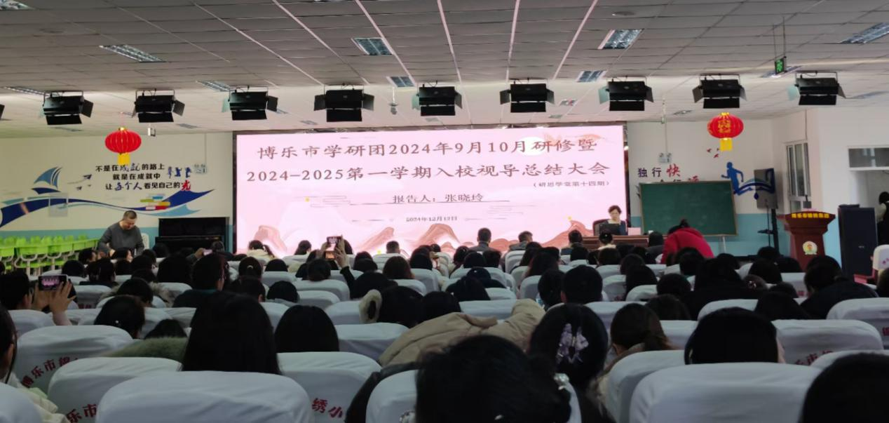 为助力博乐市义务教育教学改革国家实验区、自治区示范区创建,推动博乐市教学改革纵深发展,解决长期困扰教育教学工作的难点和堵点问题,2024年12月12日下午,博乐市教育局组织开展了2024-2025学年第一学期学研团研修暨入校视导工作总结大会。博乐市教育教学研究中心副主任张晓玲、全体专职教研员、各中小学教学校长、教研主任、学科备课组长、年级组长、27个学研团成员等共计300余人参加。