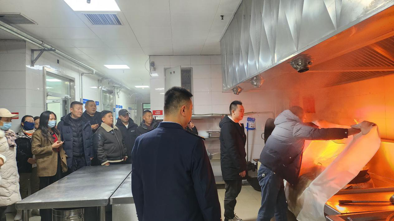 随后,培训人员对食堂后堂油锅起火进行演示操作,食堂厨师积极参与灭火演练,全面提高了食堂工作人员的操作技能。