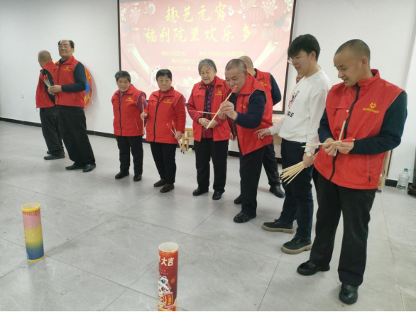 猜灯谜是元宵节不可或缺的传统活动。一排排由老人们亲手制作的花灯高高挂起,搭配着一条条职工书写的灯谜卡,营造出浓厚的节日氛围。灯谜的范围极为丰富,包括果蔬、动物、文字等,这一富有挑战性的猜灯谜活动吸引了不少老人驻足观望并开始“头脑风暴”,他们认真琢磨、踊跃猜谜,现场欢声笑语不断。供养老人孙士同动情地说道:“我年轻时候去参加庙会,最喜欢的就是猜灯谜。今天的灯谜特别有趣,我也猜到了很多,特别开心!”小小的灯谜卡不仅给老人带来了欢笑,更是给予了他们一份满满的“回忆杀”。