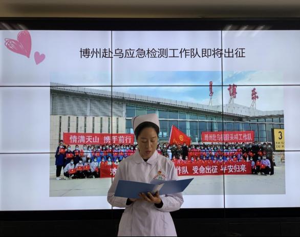 为纪念“5·12”国际护士节,弘扬南丁格尔救死扶伤的人道主义精神和“生命至上、举国同心、舍生忘死、尊重科学、命运与共”的抗疫精神。博乐市卫健委于4月26日上午,在会议室举行了“永远跟党走、我骄傲我是一名白衣天使”主题演讲比赛初赛,邀请市卫健委一级主任科员刘福强、市卫生监督所副所长王淑娟、博乐市人民医院(博乐市中西医结合医院)护理部主任索玲高娃出席并担任评委。