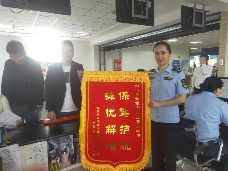 博乐市坦途运输有限责任公司名下登记有130余辆安装了CNG\LNG车用气瓶系统的重型半挂牵引车,按照《中华人民共和国特种设备安全法》的规定及特种设备安全技术规范要求,这些车辆均需要办理特种设备使用登记证(俗称:加气本)后方可使用。随着运输行业和其他特种设备行业的发展壮大,博乐市各类特种设备使用单位需要在窗口同时办理较多数量的特种设备使用登记证,博乐市市场监督管理局行政审批办急群众之所急、想群众之所想,制作了简单易懂的办事指南、所需资料模板等,办理业务同时向企业的经办人员宣传特种设备安全知识,减少特种设备安全隐患。针对运输企业重型半挂牵引车随车气瓶多、办理耗时久等情况,博乐市市场监督管理局窗口开设“延时服务”和“帮办服务”,减少企业和司乘人员等候时间和车辆的停运时间。这面锦旗是企业对博乐市市场监督管理局行政审批窗口“交换立场、热情服务”宗旨的认可。