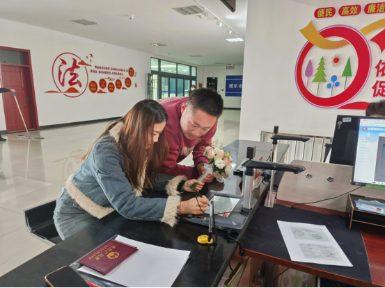 博乐市民政局婚姻登记处提前谋划,精心部署,多措并举,圆满完成12月12日婚姻登记工作。为保证新人在这个特别的日子领取到幸福的“红本本”,婚姻登记处提前做好一系列措施:一是提前检查登记设备,登记员对婚姻登记系统、打印机、高拍仪等设备提前进行全面检测,保证婚姻登记工作顺利运行。二是登记员提前对材料进行预审,对资料存在问题的及时告知当事人,确保群众“最多跑一次”,有效引导错峰登记,实现婚姻登记“一窗受理、一网通办”。新人到现场就能以最快的速度领取到结婚证。三是在办证大厅内摆放各种宣传资料,满足新婚当事人的多样化需求。