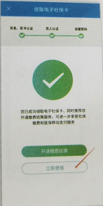 6、若参保地市开通了缴费结算功能,可点击开通缴费结算按流程操作 若参保地市未开通缴费结算功能,可点击立即使用进入电子社保卡页面